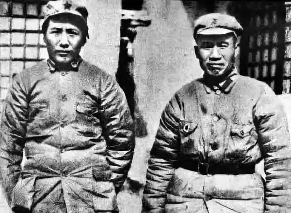 1936年长征胜利后,毛泽东和朱德到达陕北后合影